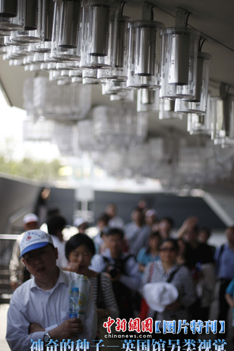 上海世博園開園才數(shù)日,自號“種子圣殿”的英國館已成人氣最旺場館之一。該館由6萬根亞克力桿巧妙構成,隨風搖動,頗為新奇。其每根桿子里都含有植物種子。中新社記者 盛佳鵬 攝