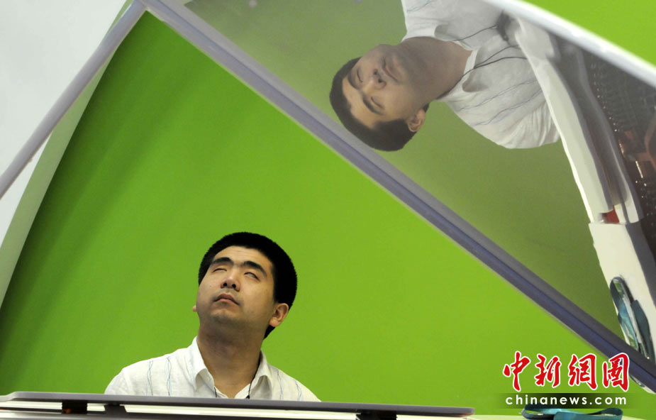 5月4日是上海世博會第四天,盲人鋼琴家孫巖在生命陽光館專設區(qū)域為眾多殘疾人和觀眾演奏,導盲犬靜臥在他的腳邊,這是世博會歷史上第一次為殘疾人設館。孫巖2005年獲得“日本橫濱第一屆國際殘疾人鋼琴比賽”金獎,他是中央音樂學院有史以來第一位盲人大學生和研究生。他的傾情演奏感動全場,掌聲連連。中新社發(fā) 賈國榮 攝