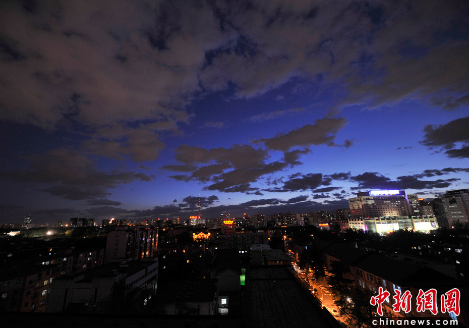 5月5日立夏,京城降雨今晨剛剛結(jié)束,霧氣伺機又起。傍晚時分,隨著四級北風(fēng)的到來,京城天氣逐漸轉(zhuǎn)晴,霧氣慢慢消散天空彤云密布夜色瑰麗。中新網(wǎng)記者 金碩 攝