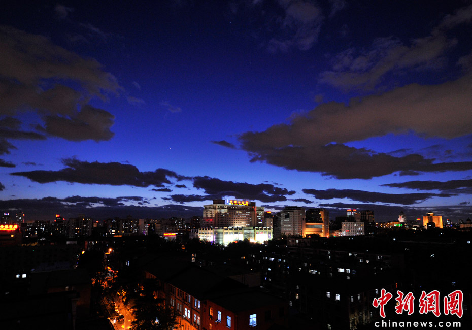 5月5日立夏,京城降雨今晨剛剛結(jié)束,霧氣伺機(jī)又起。傍晚時(shí)分,隨著四級北風(fēng)的到來,京城天氣逐漸轉(zhuǎn)晴,霧氣慢慢消散天空彤云密布夜色瑰麗。中新網(wǎng)記者 金碩 攝
