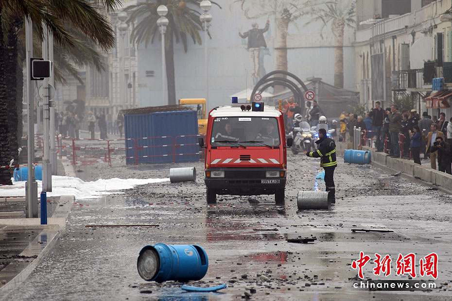 近日,在法國(guó)南部城市尼斯,巨浪襲擊城市的海岸后造成城市道路癱瘓。法國(guó)南部部分地區(qū)遭遇大風(fēng)和巨浪,使當(dāng)?shù)亟煌ê凸╇娛艿讲煌潭鹊挠绊憽D片來(lái)源:中國(guó)新聞網(wǎng)