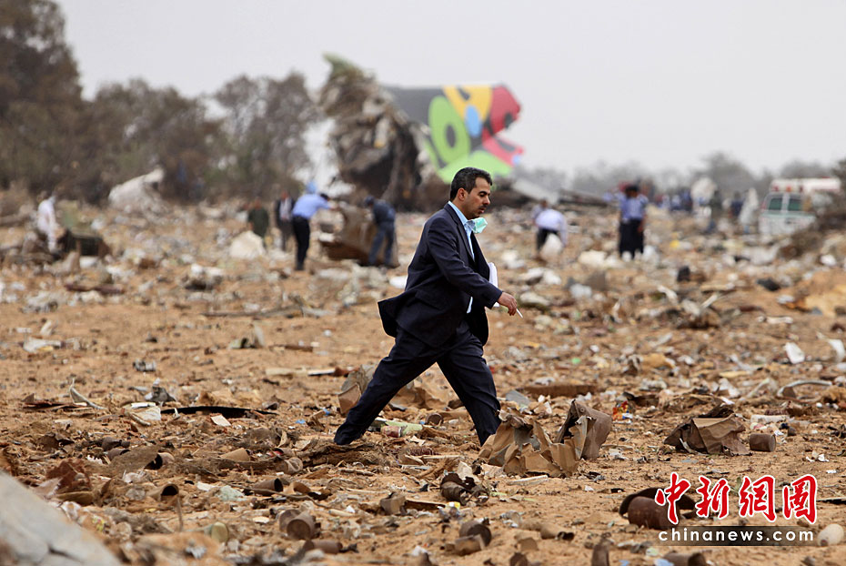 5月12日,一架從南非起飛的利比亞航班在利比亞首都的黎波里機(jī)場(chǎng)墜毀,機(jī)上103名乘客和機(jī)組人員遇難。圖片來源:中國(guó)新聞網(wǎng)