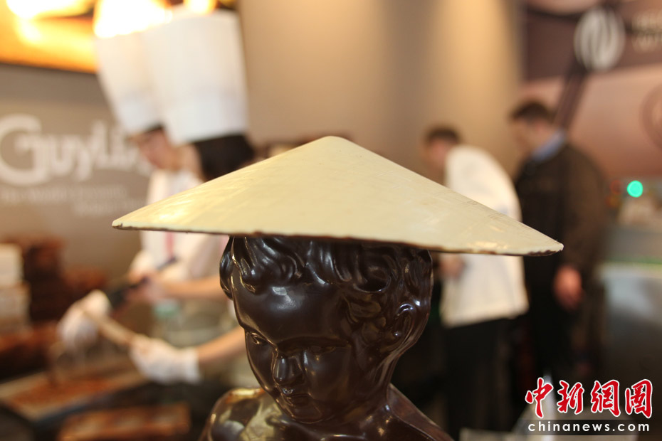 圖為比利時(shí)館內(nèi)展示巧克力制作。 中新社記者 蘇丹 攝