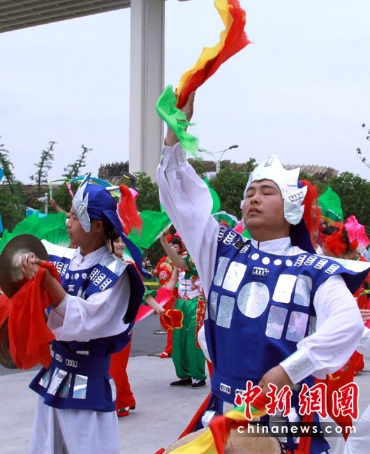 5月14日,上海世博會“河北活動周”在寶鋼大舞臺啟幕,戰(zhàn)鼓、旱船、拉花、草編、石雕、年畫、雜技、皮影戲……燕趙大地的傳統(tǒng)絕活一一登場!昂颖被顒又堋弊14日持續(xù)至18日,將圍繞“京畿神韻”的主線,向世界展示河北省的經(jīng)濟和藝術魅力,是繼直轄市北京、天津之后,第一個由省份在世博會上舉辦的活動周。中新社記者 殷春永 攝