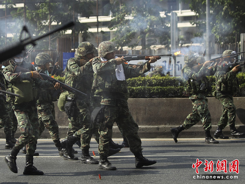 泰國政府軍和反政府示威者5月14日深夜在曼谷爆發(fā)嚴(yán)重暴力沖突。曼谷緊急醫(yī)療機構(gòu)15日稱,截止當(dāng)?shù)貢r間早晨6時,沖突已導(dǎo)致16人死亡,至少141受傷,傷者中包括3名外國人。圖片來源:中國新聞網(wǎng)