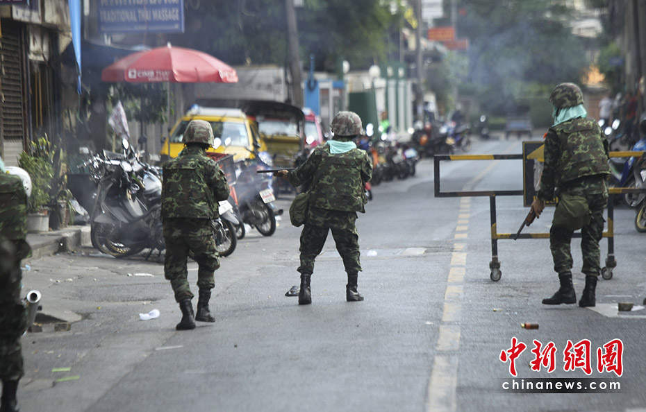 泰國政府軍和反政府示威者5月14日深夜在曼谷爆發(fā)嚴重暴力沖突。曼谷緊急醫(yī)療機構(gòu)15日稱,截止當?shù)貢r間早晨6時,沖突已導致16人死亡,至少141受傷,傷者中包括3名外國人。圖片來源:中國新聞網(wǎng)