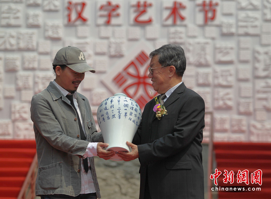 5月15日,首屆“兩岸漢字藝術節(jié)”新聞發(fā)布會在北京孔廟舉行。原文化部長、著名作家王蒙與臺灣文化總會會長劉兆玄等共同書寫漢字——“漢字藝術源遠流長”。 中新社發(fā) 蘇丹 攝