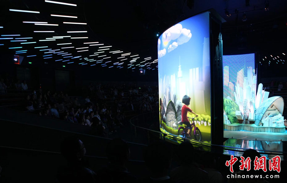 在世博會(huì)眾多的展館中,各類的大屏幕展示讓參觀者有如身臨其境,也讓游客們充分感受不同國(guó)家、不同地域的文化特色及先進(jìn)科技理念,如幻似夢(mèng)的屏幕光影也成為本次世博的最佳看點(diǎn)。圖為澳大利亞館。中新社記者 杜洋 攝