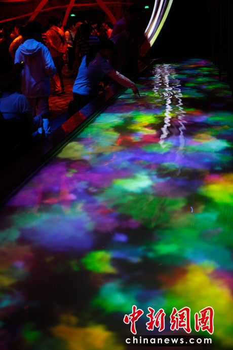 在世博會(huì)眾多的展館中,各類的大屏幕展示讓參觀者有如身臨其境,也讓游客們充分感受不同國(guó)家、不同地域的文化特色及先進(jìn)科技理念,如幻似夢(mèng)的屏幕光影也成為本次世博的最佳看點(diǎn)。中新社記者 盛佳鵬 攝