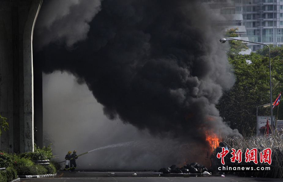 19日,發(fā)起驅散行動的泰國軍方突破了反政府“紅衫軍”示威者在曼谷市中心所筑路障,進入其營地內(nèi),雙方爆發(fā)槍戰(zhàn)。目擊者稱,已有至少9人受傷,多數(shù)是被槍擊中。
