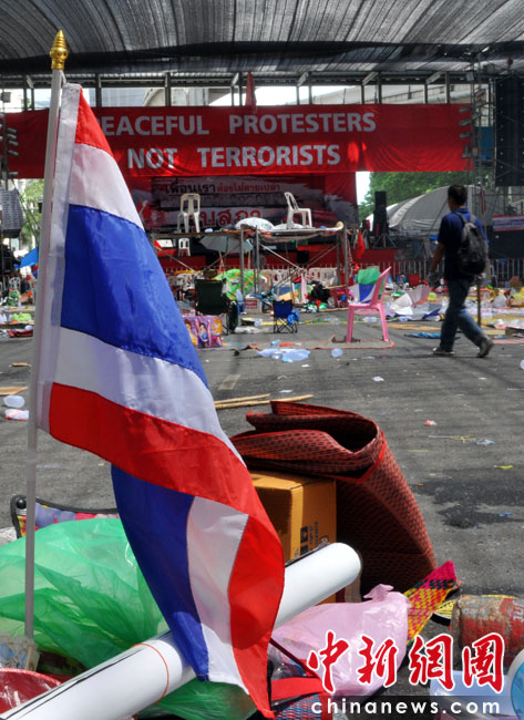 泰國(guó)紅衫軍領(lǐng)導(dǎo)人乍都蓬19日下午1時(shí)決定,向曼谷警方投降。同時(shí)向警方投降的還包括納塔兀、素蓬、翁醫(yī)師等紅衫軍核心領(lǐng)導(dǎo)人。紅衫軍領(lǐng)導(dǎo)人納塔兀責(zé)其支持者宣布,結(jié)束紅衫軍已持續(xù)了兩個(gè)多月的集會(huì)示威行動(dòng)。圖片來(lái)源:中國(guó)新聞網(wǎng)
