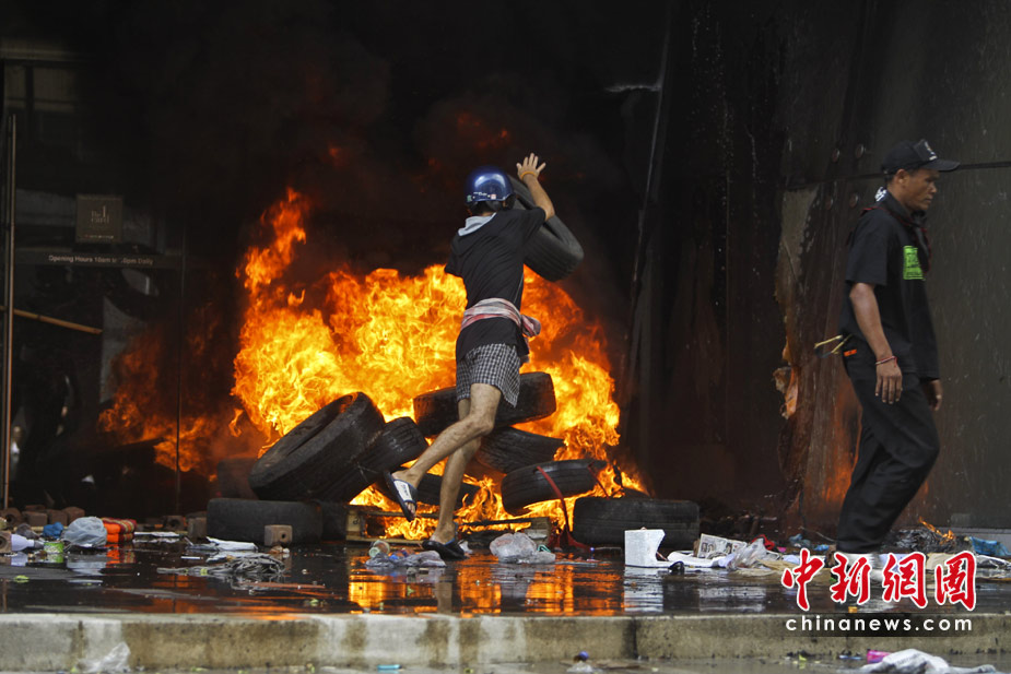 泰國(guó)軍方19日清場(chǎng),希望將陷入內(nèi)戰(zhàn)邊緣的曼谷拯救出來(lái),雖然紅衫軍節(jié)節(jié)敗退,但有激進(jìn)分子未肯罷休,四處放火,電視臺(tái)、股票交易所、電力公司、幾間銀行、商場(chǎng)戲院都遭殃,商場(chǎng)和便利店亦成為搶掠目標(biāo)。據(jù)報(bào)曼谷有27處地方起火,泰國(guó)最大的商場(chǎng)Central World、Siam Square和Siam Paragon三大購(gòu)物中心被縱火,其中Central World燒通頂,據(jù)報(bào)快將倒塌。
