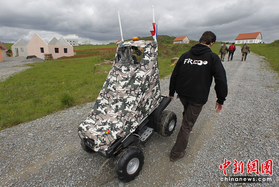 當(dāng)?shù)貢r(shí)間5月18日,德國(guó)南部哈默爾堡舉行了歐洲軍用機(jī)器人大賽。歐洲各國(guó)軍用機(jī)器人在大賽上一展身手。圖片來源:中國(guó)新聞網(wǎng)