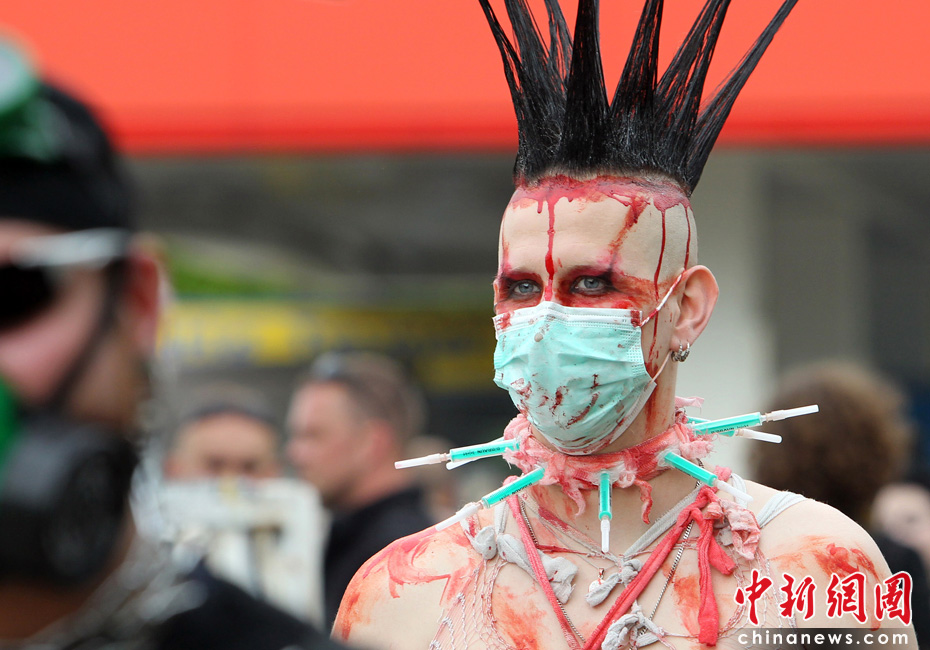 5月21日,德國(guó)萊比錫一年一度的哥特藝術(shù)節(jié)開(kāi)幕。哥特節(jié)為哥特浪漫主義愛(ài)好者提供哥特式的音樂(lè)會(huì)、展覽、聚會(huì)等活動(dòng),約有2萬(wàn)人參加了今年的哥特節(jié)。圖片來(lái)源:中國(guó)新聞網(wǎng)