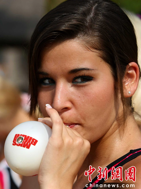 5月22日,一場沙灘趣味運動會在三亞海邊舉行,全球64位比基尼佳麗悉數(shù)登場,展現(xiàn)自己的運動天賦。中新社發(fā) 富田 攝