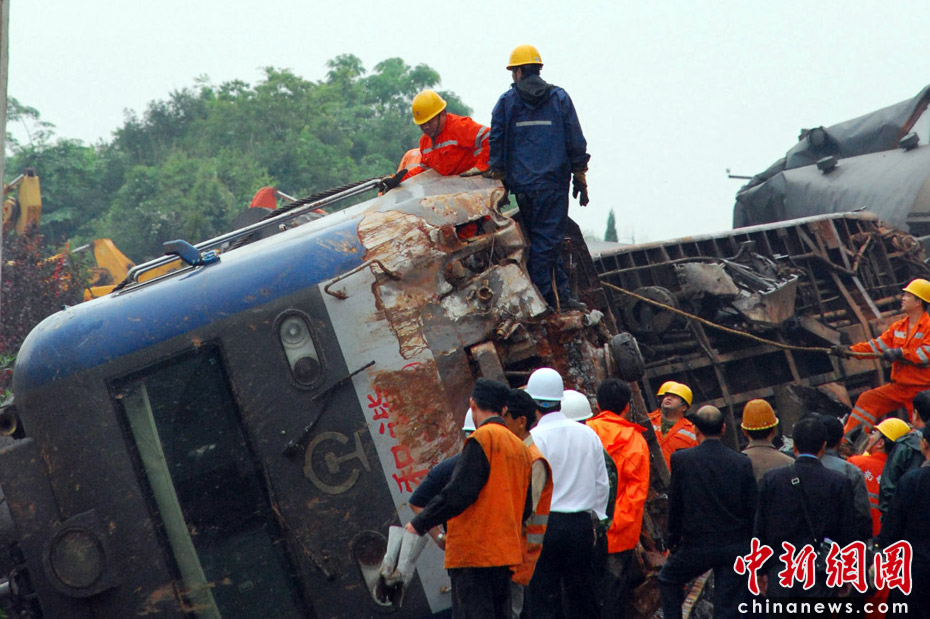 5月23日凌晨2時10分,滬昆鐵路江西東鄉(xiāng)段發(fā)生一起客運列車脫線事故,截至上午9時,已有10人遇難,車內(nèi)乘客全部被轉(zhuǎn)移,現(xiàn)場救援工作正在緊張進行。事故發(fā)生后,南京軍區(qū)武警,江西省消防、交警,中鐵電氣化局、醫(yī)療等部門立即組織近萬名人員參與搶險救災(zāi),目前現(xiàn)場已有10余臺挖土機和吊車參與救援。中新社發(fā) 劉占昆 攝