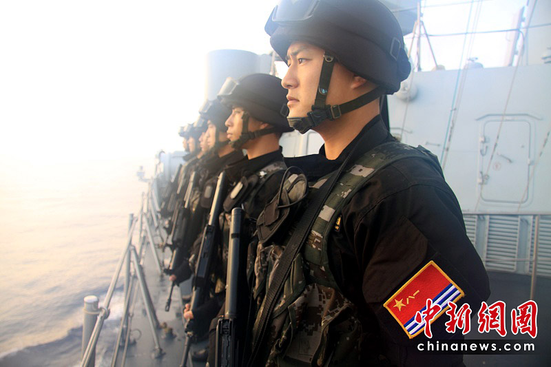 4月22日早晨,參加升旗儀式,特戰(zhàn)隊員沐浴在濃霧中。胡軍 攝