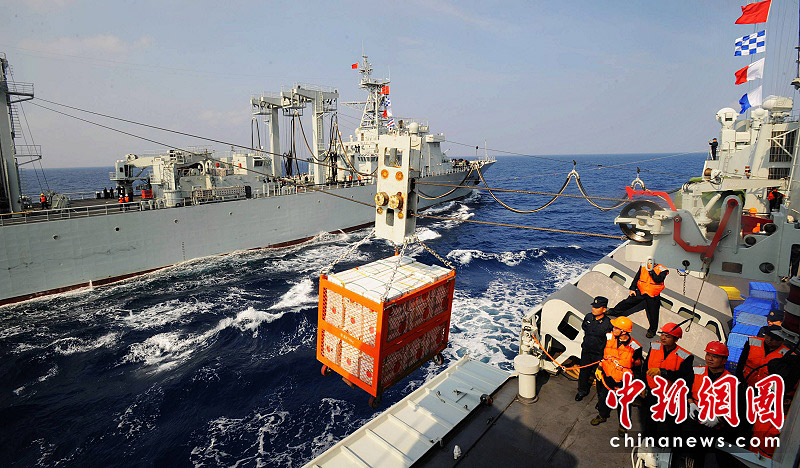3月12日,在阿拉伯海上進行第二次補給。江山 攝