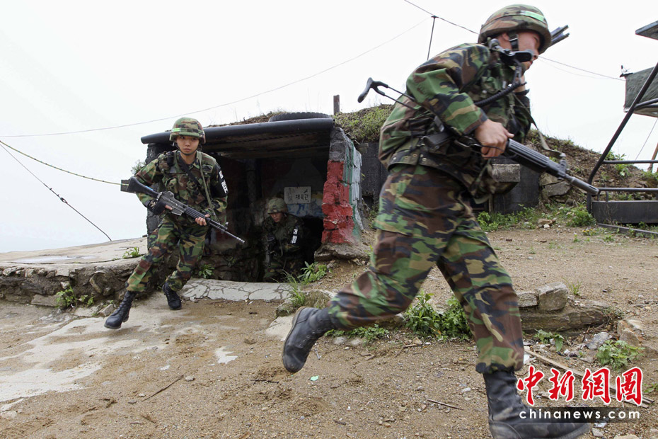 5月24日,韓國軍隊在靠近韓朝非軍事區(qū)的揚口舉行軍事演習。圖片來源:中國新聞網(wǎng)