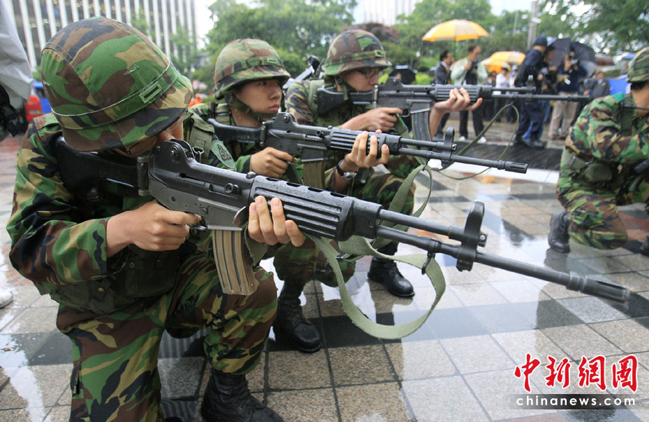 5月24日,韓國軍隊在靠近韓朝非軍事區(qū)的揚口舉行軍事演習(xí)。圖片來源:中國新聞網(wǎng)