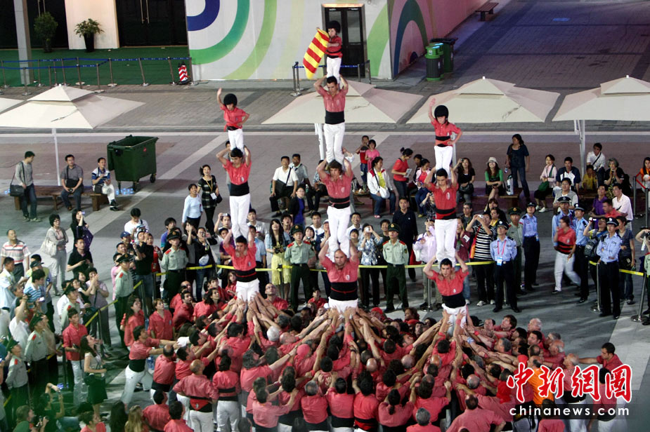 5月25日,西班牙“人塔”在上海世博會歐洲廣場上逐層壘起,為西班牙加泰羅尼亞周助興!隘B人塔”(HUMAN WALL),是西班牙加泰羅尼亞地區(qū)最具傳統(tǒng)特色的民俗節(jié)慶活動,起源于18世紀(jì)末加泰羅尼亞南部的巴爾斯。后來,“疊人塔”活動逐漸在加泰羅尼亞其他地區(qū)流行,進(jìn)而風(fēng)靡整個(gè)西班牙。中新社發(fā) 杜洋 攝