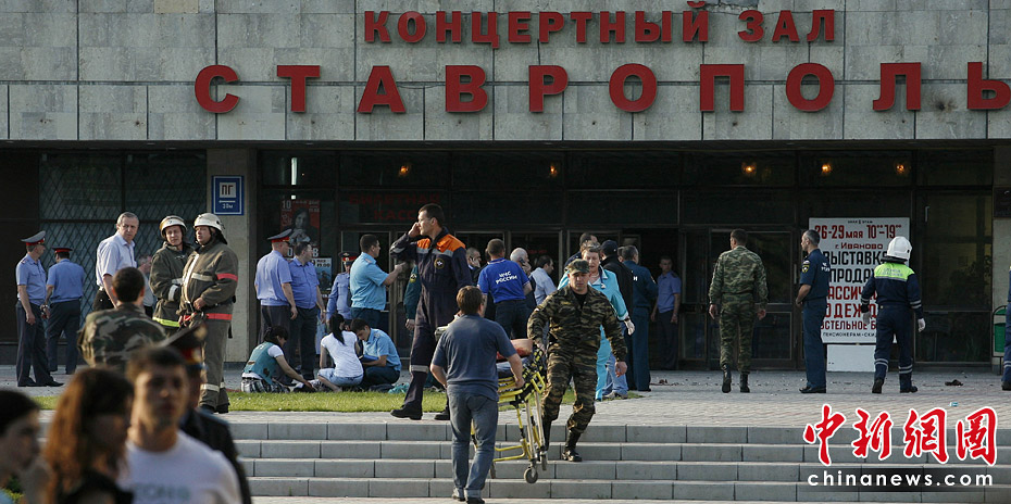當?shù)貢r間5月26日18時45分,一不明爆炸物在與斯塔夫羅波爾市體育文化宮毗鄰的一個建筑附近發(fā)生爆炸,造成至少5人死亡,46人受傷。警方初步判斷,爆炸造成的死傷人員可能是來參加車臣國家歌舞團舉行的音樂會的觀眾。目前爆炸現(xiàn)場已被封鎖,俄聯(lián)邦總檢察院北高加索和南部聯(lián)邦區(qū)偵查機關正會同當?shù)鼐胶吐?lián)邦調查局進行現(xiàn)場調查。圖片來源:中國新聞網(wǎng)