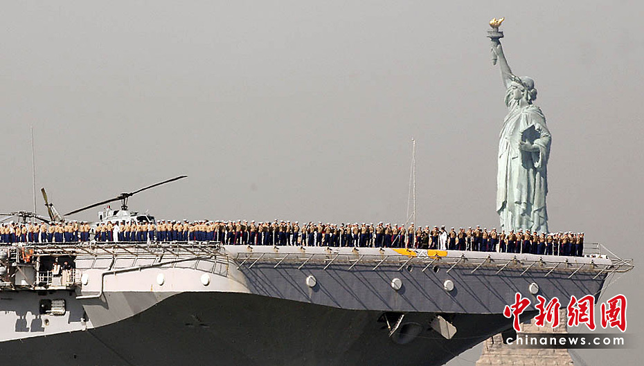 當(dāng)?shù)貢r間5月26日,美國第23屆紐約艦隊周開幕,包括“硫磺島”號兩棲攻擊艦在內(nèi)的11艘參加艦隊周活動的軍艦由南向北在哈得孫河面上游弋。紐約民眾將以停靠在曼哈頓哈得孫河86號碼頭的“無畏號”航母博物館為中心,展開為期一周的慶祝和紀(jì)念活動。圖片來源:中國新聞網(wǎng)