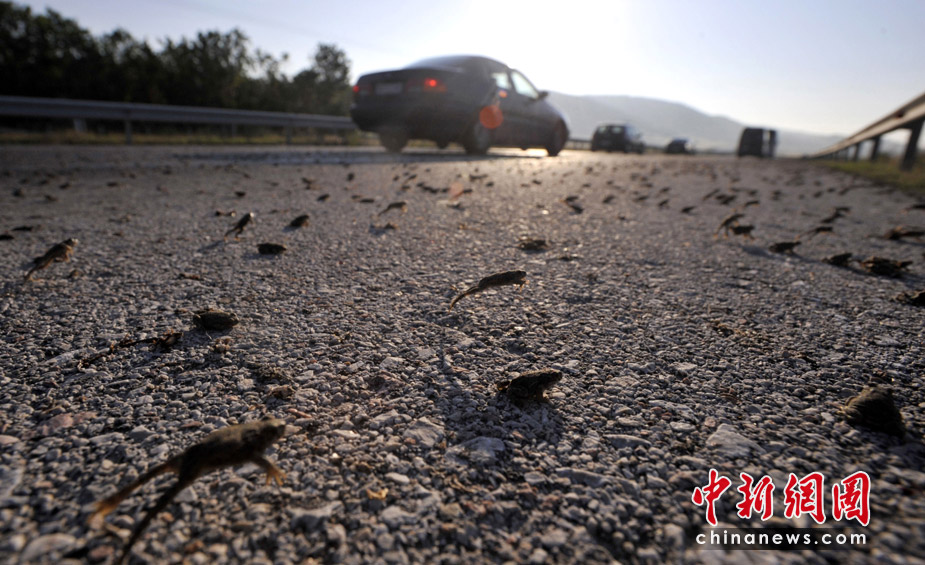 希臘數(shù)百萬只青蛙“霸占”高速公路