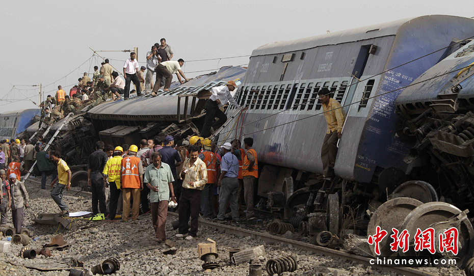 當(dāng)?shù)貢r(shí)間5月28日,印度一列特快列車在東部西孟加拉邦的西米德納布爾遭反政府武裝襲擊脫軌,造成百余人死傷。圖片來源:中國新聞網(wǎng)