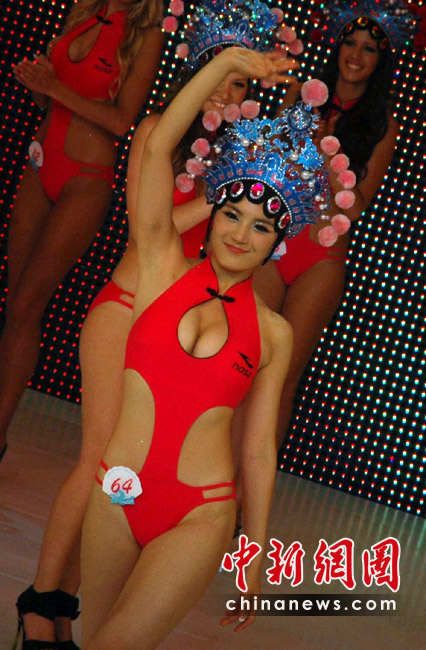 5月29日晚,第35屆國(guó)際比基尼小姐全球總決賽在三亞“美麗之冠”落下帷幕,22歲的羅馬尼亞選手Diana Irina Boanca摘得冠軍?倹Q賽還評(píng)選出了四季小姐,18歲的中國(guó)選手趙茜獲得“秋季小姐”,澳大利亞、委內(nèi)瑞拉和拉脫維亞選手分別獲得春、夏、冬季小姐。共有來自世界各地的64位佳麗參加了總決賽的角逐。當(dāng)晚,佳麗們展示了各自國(guó)家或地區(qū)特色的民族服飾,用不同的方式展示了不同風(fēng)格的比基尼“秀”,性感迷人。 中新社記者 尹海明攝