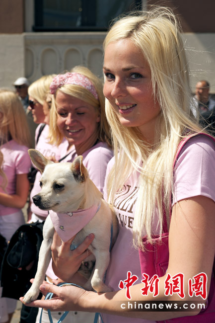 金發(fā)女郎集體街頭游行 秀高挑身材