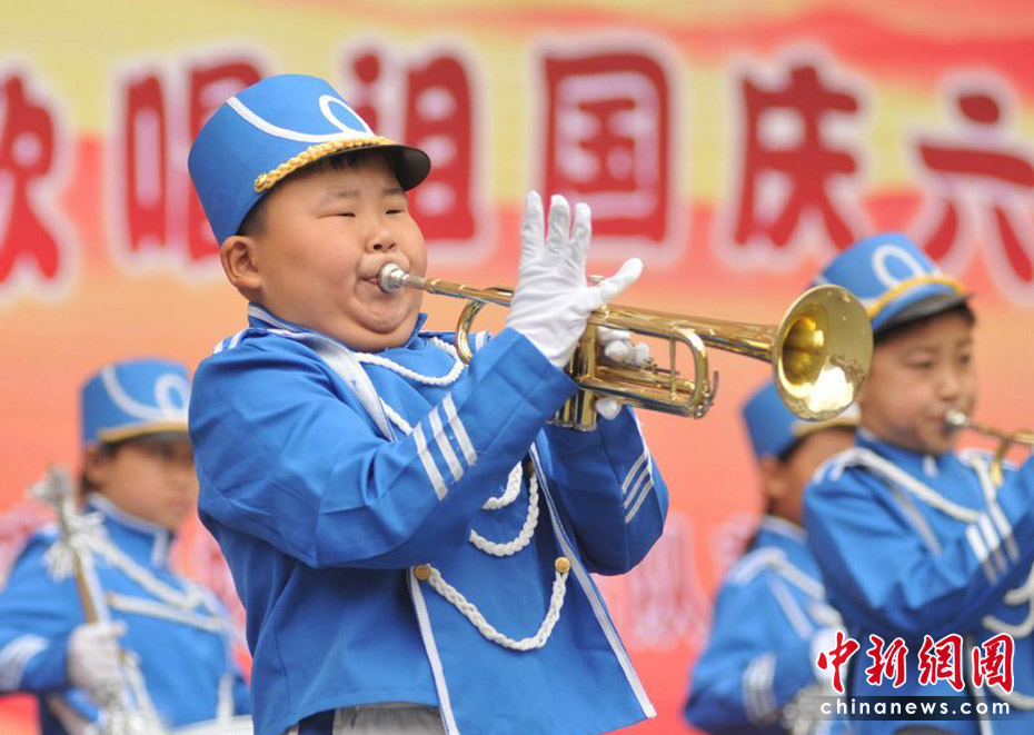 5月29日,“紅領(lǐng)巾太陽(yáng)花,歌唱祖國(guó)慶六一”黑龍江省少先隊(duì)統(tǒng)一主題隊(duì)會(huì)哈爾濱現(xiàn)場(chǎng)暨少先隊(duì)鼓樂隊(duì)展演在哈爾濱花園小學(xué)舉行。圖為少先隊(duì)鼓樂隊(duì)隊(duì)員等候上場(chǎng)。荊天旭/CFP