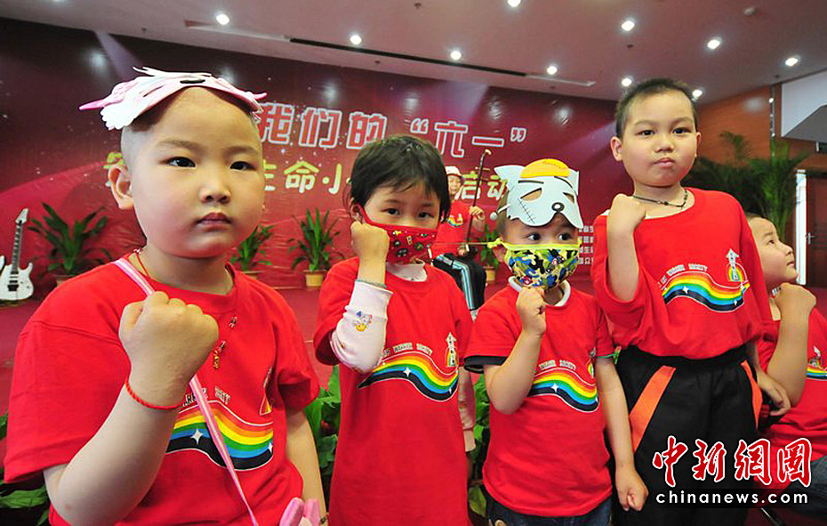 2010年5月30日,合肥,“生命小戰(zhàn)士”們緊握拳頭,展示他們堅(jiān)強(qiáng)生活的信念。虞俊杰/CFP