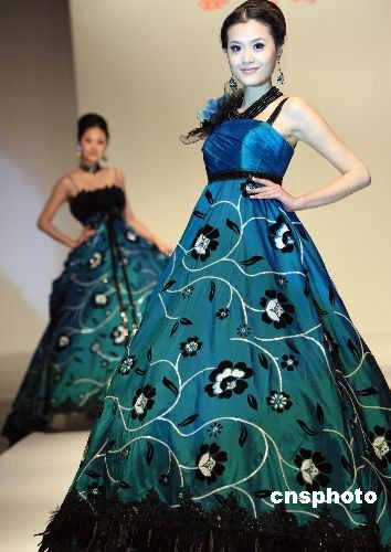 2月12日,在上海國際婚紗攝影器材展覽會(huì)上舉行的2009婚紗禮服流行趨勢(shì)發(fā)布會(huì),吸引了眾多商家爭相秀出各自的新款婚紗禮服。據(jù)悉,本屆婚紗展以超過7萬平方米展覽面積、500家知名參展企業(yè)的規(guī)模創(chuàng)歷屆之最。圖為模特展示新款婚紗禮服。中新社發(fā) 湯彥俊 攝