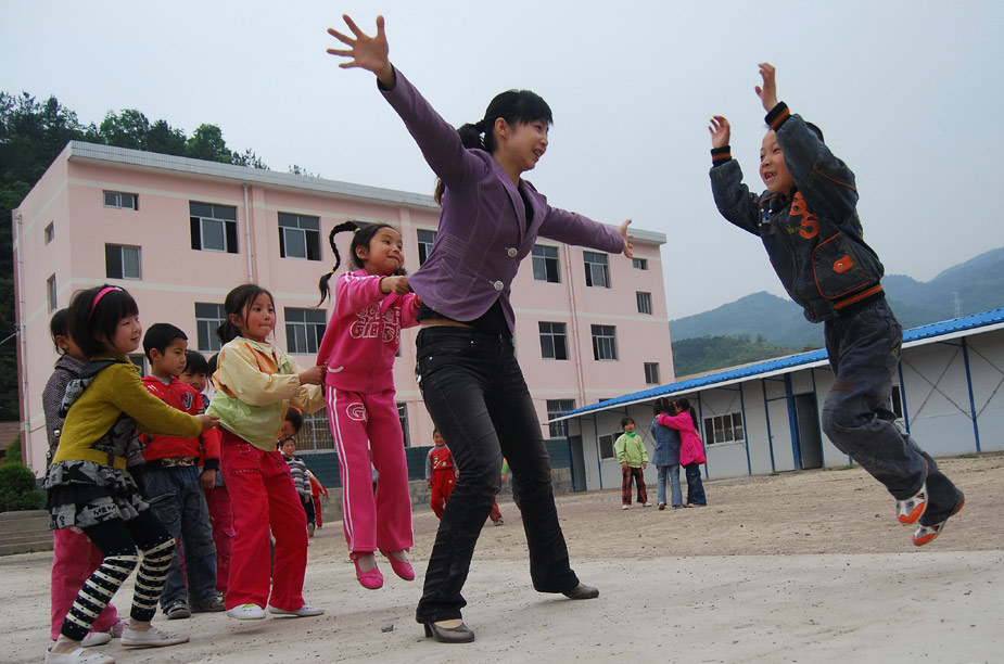 2009年5月4日,全國抗震英雄---陜西寧強黃壩驛鄉(xiāng)中心小學教師王敏,正在和學生們一起做老鷹抓小雞游戲,用歡笑聲驅(qū)散了地震帶來的陰霾。當日她榮獲第十三屆“中國青年五四獎。”