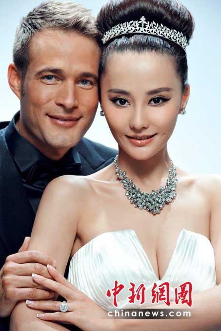 在婚紗照中,馬雅舒身著昂貴的婚紗再次秀起了“鴿子蛋”鉆戒,幸福的感覺溢于言表,而她的洋老公也得以“廬山現(xiàn)真人”。
