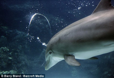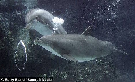 據(jù)英國《每日郵報》報道,海豚被認為是世界上最智能的動物,同時也以調(diào)皮貪玩著稱。在被稱作世界第二大海底世界的奧蘭多海底世界(Seaworld in Orlando),人們幸運的看見這些貪玩的小家伙們表演它們新的愛好:在水中吹氣泡。它們似乎想將它們的休閑時光得到最大的利用,來觀賞它們的游客也看得十分盡興;蛟S是歌曲激發(fā)出了海豚在水中吹氣泡的靈感,聰明的海豚已經(jīng)學(xué)會了在水中吹氣泡玩耍,就像孩童們玩吹肥皂泡作樂一樣。