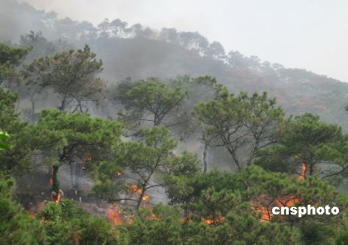 十一月十一日零晨廣東鼎湖富廊村的北嶺山林場布基工區(qū)發(fā)生山火,到十二日記者發(fā)稿時止,總過火面積約四千畝,現場東線桃園工區(qū)火勢得到較好控制,但山火仍在全力撲救中,當地已調集二千五百人次撲救,并出動兩架直升飛機從空中灑水彈滅火,暫未收到人員傷亡的報告。中新社發(fā) 黃耀輝 攝