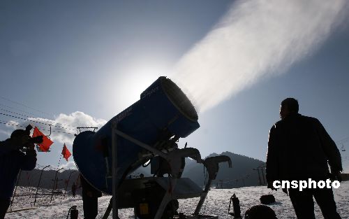 十一月十七日,新疆烏魯木齊某滑雪場工作人員正在操作造雪機(jī),對即將投入使用的雪道進(jìn)行人工造雪。當(dāng)天,2007新疆冬季冰雪旅游啟動儀式在該滑雪場舉行。新疆冬季漫長,冰雪資源極為豐富,截至目前已建成二百一十多家滑雪場和冰雪娛樂點。中新社發(fā) 劉新 攝