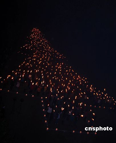 12月24日晚,2000名游客在長沙世界之窗高舉手中的火把,擺出圣誕樹隊形。據(jù)悉,如此巨型的“人體”圣誕樹在中國來說尚屬首創(chuàng)。中新社發(fā) 肖前輝 攝