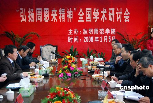 1月5日,北京、上海、內(nèi)蒙古、陜西等地的30余名周恩來研究專家齊聚江蘇淮陰師范學(xué)院,圍繞“宏揚(yáng)周恩來精神”,討論周恩來精神對(duì)中華民族精神的升華及其當(dāng)代價(jià)值,紀(jì)念周恩來誕辰110周年。中新社發(fā) 方東旭 攝