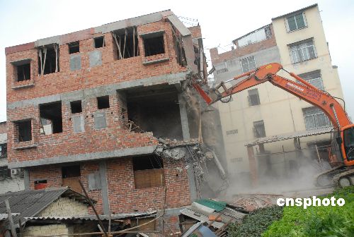 一月十五日,廣西南寧市西鄉(xiāng)塘區(qū)近八百名執(zhí)法人員對(duì)該轄區(qū)內(nèi)四戶違法建設(shè)樓房進(jìn)行拆除,拆除違法建筑面積達(dá)兩千平方米。據(jù)悉,目前南寧市私房違法搶建現(xiàn)象較為嚴(yán)重,對(duì)城市的規(guī)劃造成了一定影響,市政府對(duì)此采取強(qiáng)拆措施。中新社發(fā) 何卓姿 攝