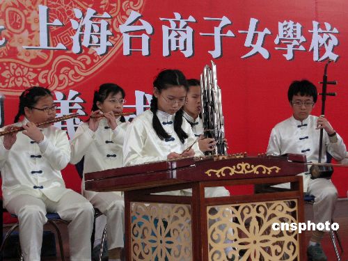 圖為上海臺(tái)商子女學(xué)校的學(xué)生在表演民族器樂。