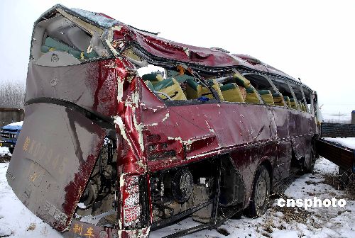 2008年1月20日深夜,一輛從蘇州發(fā)往安徽阜陽的大巴行駛至104國道明光市境內(nèi)時,翻下路邊溝內(nèi),造成7人當場死亡。事故發(fā)生后,當?shù)亟痪、醫(yī)院等部門火速趕到現(xiàn)場,實施救援。截至記者發(fā)稿時,已有11人死亡,51人不同程度受傷。傷者正在醫(yī)院接受治療,除了兩名重傷者沒有脫離危險外,其他傷者暫時無恙。據(jù)了解,此車核載51人,實載72人。事故原因具體尚在調(diào)查之中。中新社發(fā) 計成軍 攝