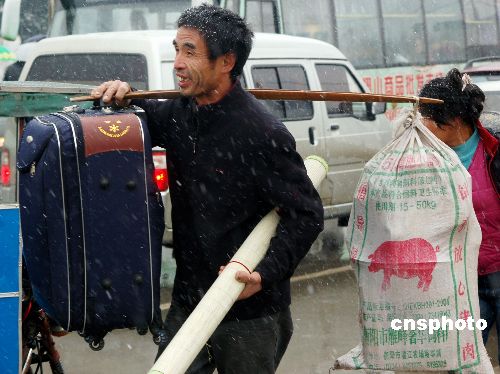 圖:蘇州外來務(wù)工者冒雪返鄉(xiāng)