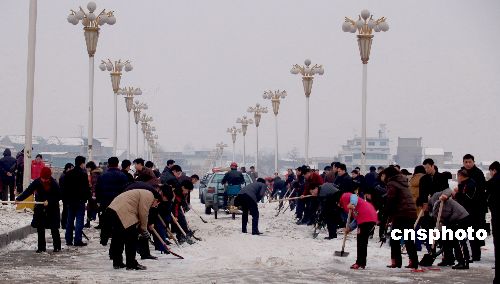 圖:湖南邵陽(yáng)市全體軍民奮戰(zhàn)在抗冰救災(zāi)第一線鏟冰除雪