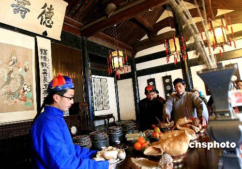 1日31日,三位穿著清代服裝的男演員分別代表祖孫三代,在浙江紹興市區(qū)的魯迅祖宅內(nèi)彩排過“小年”習(xí)俗。當(dāng)日是小年夜后的第一天,按紹興傳統(tǒng)小年夜要舉行祝福祭祀,這一習(xí)俗因魯迅筆下的《祝!范劽珖V行律绨l(fā) 袁云 攝