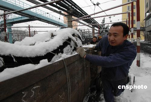 2月1日,職工在搶運(yùn)各種井下生產(chǎn)所需材料。罕見的高強(qiáng)度降雪連續(xù)突襲江淮大地。入冬以來,作為國有重點(diǎn)煤礦的安徽淮北桃園煤礦積極克服雪災(zāi)給安全生產(chǎn)帶來的不利影響,精心組織原煤生產(chǎn),全力保證電煤正常供應(yīng)。 中新社發(fā) 任兆勁 攝