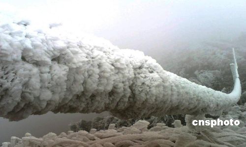 中國(guó)廣西最近遭遇嚴(yán)重雨雪冰凍災(zāi)害,電力、通訊設(shè)施受到嚴(yán)重影響,圖為中國(guó)移動(dòng)廣西公司在柳州市融安縣一個(gè)超負(fù)荷的移動(dòng)光纜被冰雪凍結(jié)。中國(guó)移動(dòng)廣西公司已啟動(dòng)最高等級(jí)應(yīng)急通信方案,全力保障通信網(wǎng)絡(luò)暢通,向重災(zāi)區(qū)提供信息發(fā)布綠色通道和延遲停機(jī)等服務(wù),為抗災(zāi)救災(zāi)提供通信保障。中新社發(fā) 申蓓 攝