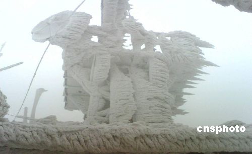 廣西近日遭遇嚴(yán)重雨雪冰凍災(zāi)害,電力、通訊設(shè)施受到嚴(yán)重影響,圖為中國移動(dòng)廣西公司在柳州市融安縣一個(gè)被冰雪包裹的移動(dòng)基站。中國移動(dòng)廣西公司已啟動(dòng)最高等級(jí)應(yīng)急通信方案,全力保障通信網(wǎng)絡(luò)暢通,向重災(zāi)區(qū)提供信息發(fā)布綠色通道和延遲停機(jī)等服務(wù),為抗災(zāi)救災(zāi)提供通信保障。中新社發(fā) 申蓓 攝